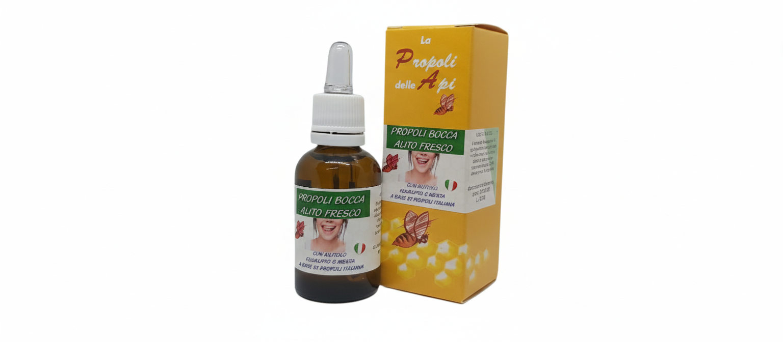 colluttorio a base di estratto di propoli, deresinato, olii essenziali e xilitolo protettivo e igienizzante del cavo orale, deglutibile!